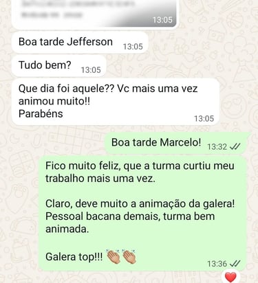 O show no nosso evento corporativo foi simplesmente perfeito, Jefferson trouxe energia e profissionalismo do início ao fim.