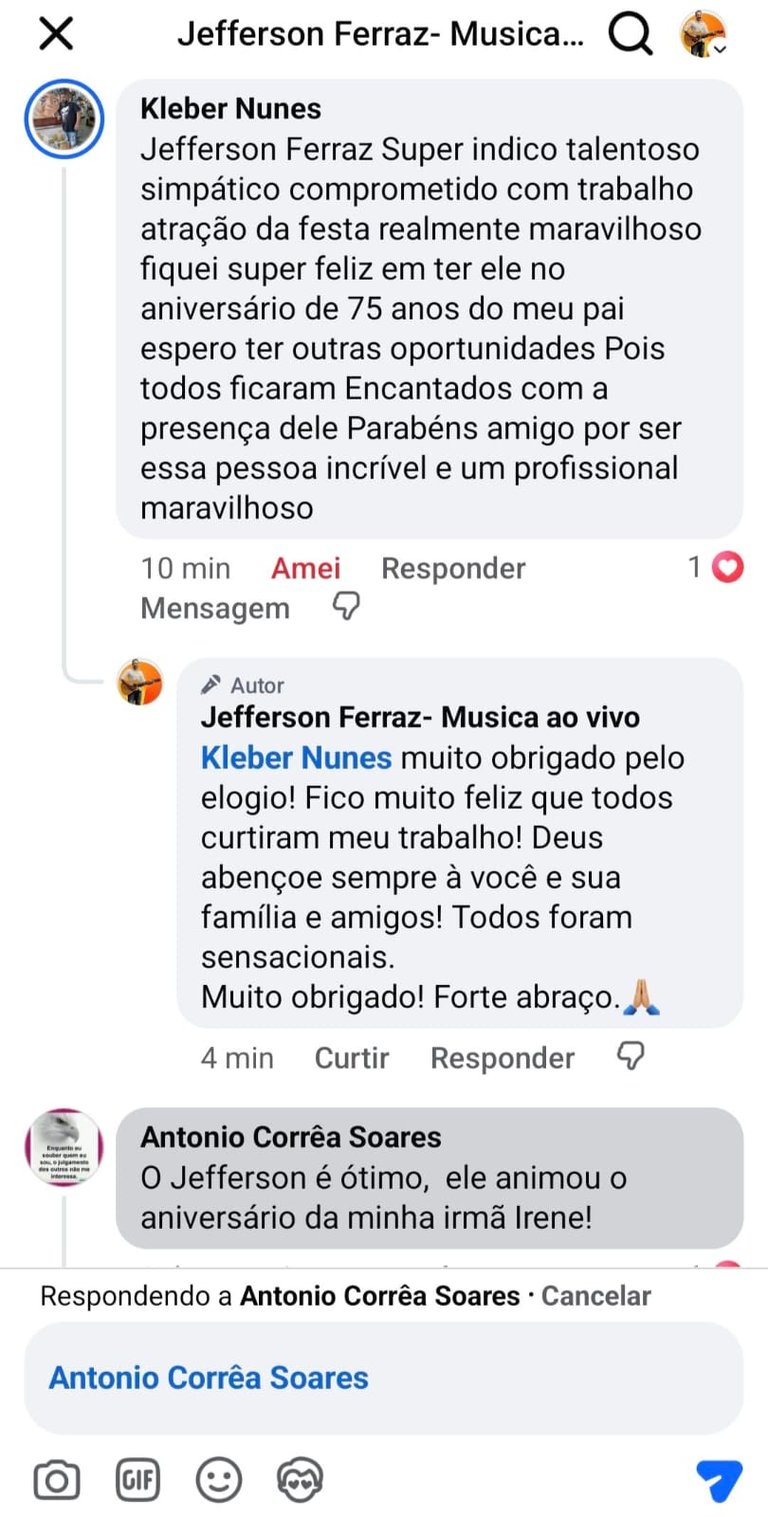 O que clientes dizem sobre o Cantor Jefferson Ferraz